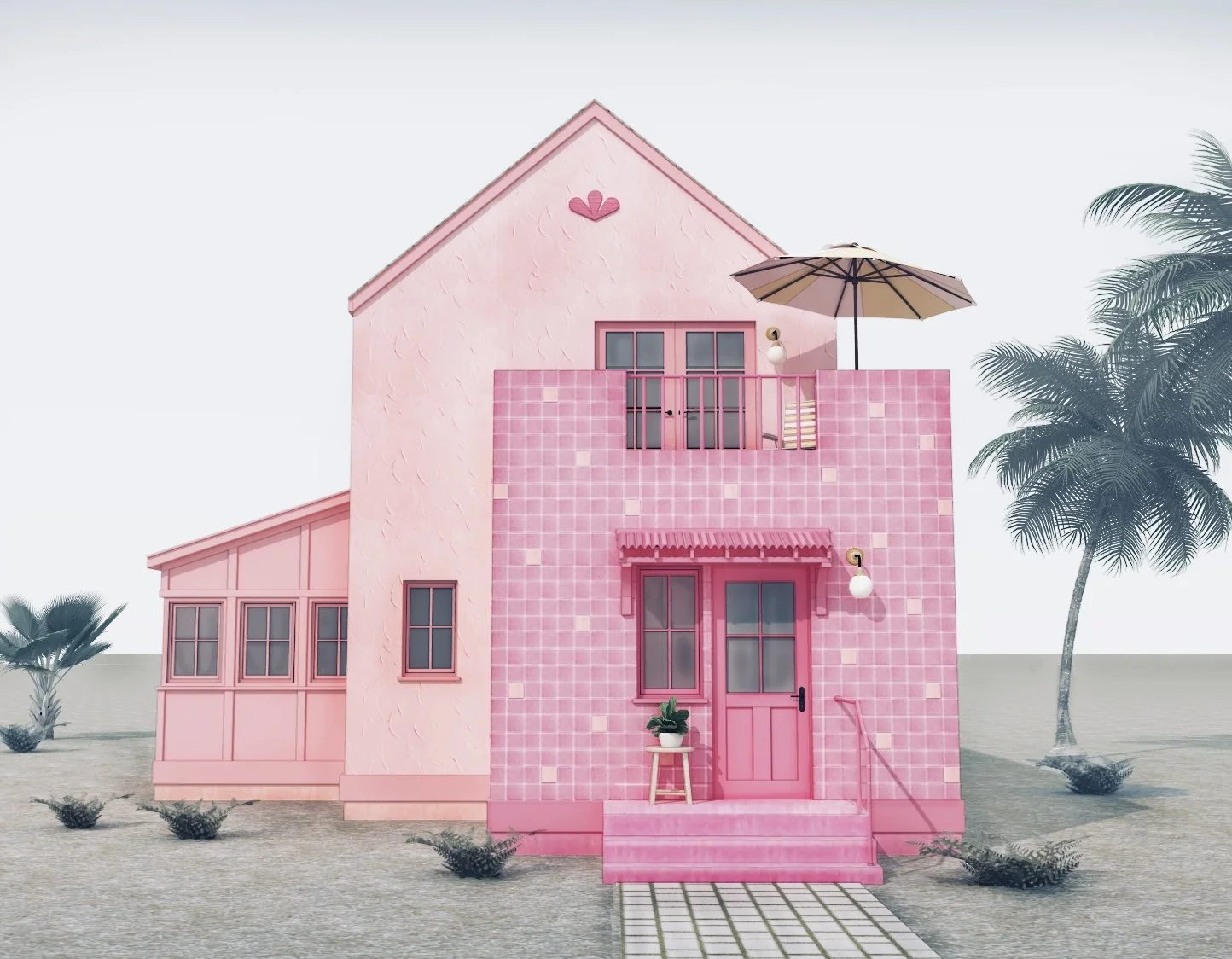 Stucco house with a tiled entry and sun deck above. Dining Room bump-out off of Kitchen/Living Room. Radiating joy to the neighborhood!